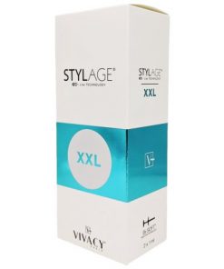 - 2 x 1 ml or 1 x 2,2 ml pre-filled glass, sterile latex free syringes of STYLAGE XXL gel