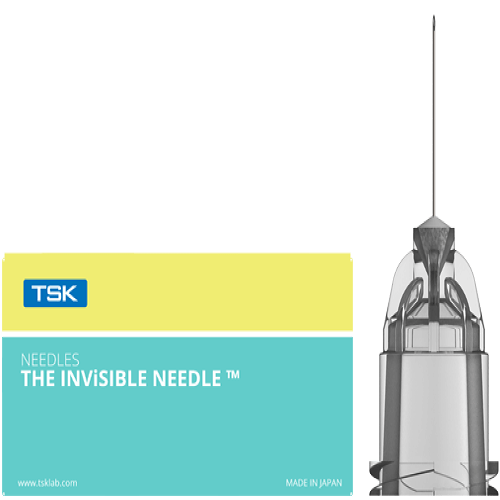 A tighter ‘lock’ between the needle and syringe means no needle ‘pop off’ or detach from the hub. Especially if the syringe is subject to any high pressure. This is due to an in-built treading on the outside of the needle. TSK The Invisible Needle
